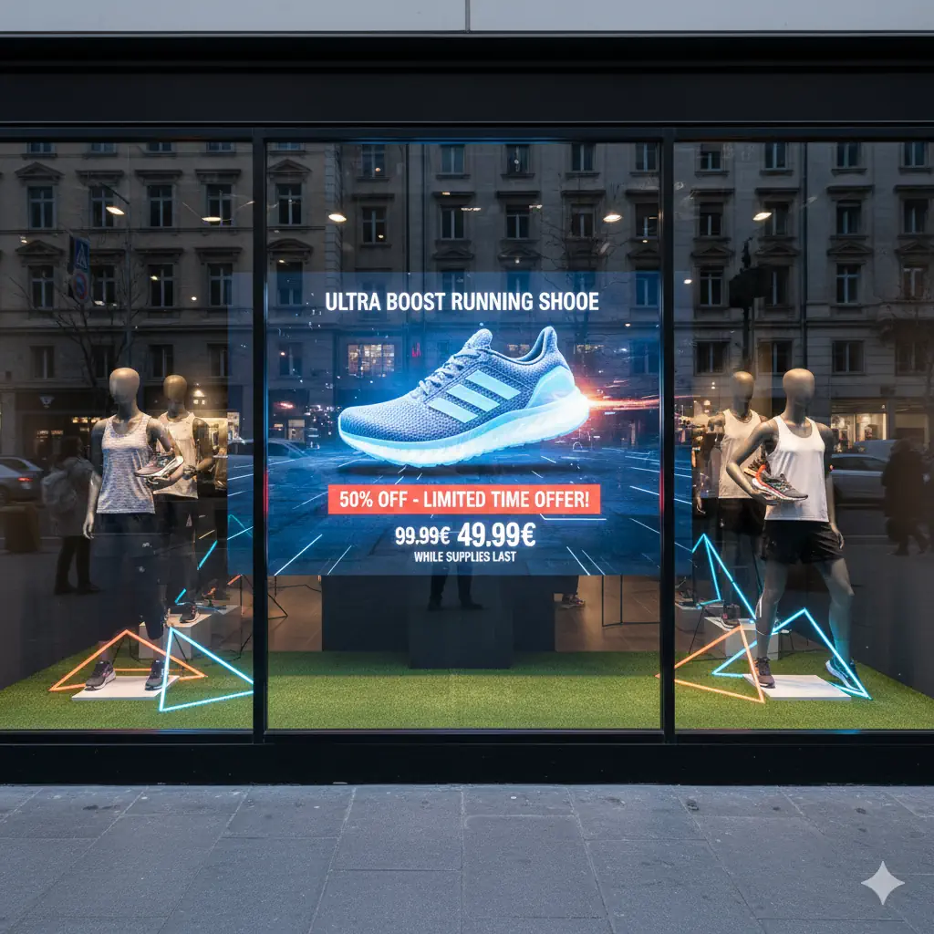 En ADN Publicidad ayudamos a los negocios locales y pymes de todo Ourense y Galicia a destacar en su entorno. Nuestra Solución Integral de Pantallas Digitales para escaparates te permite comunicar de forma dinámica y profesional, sin complicaciones técnicas ni grandes inversiones. Nos encargamos de todo: instalación, mantenimiento y gestión de contenidos.